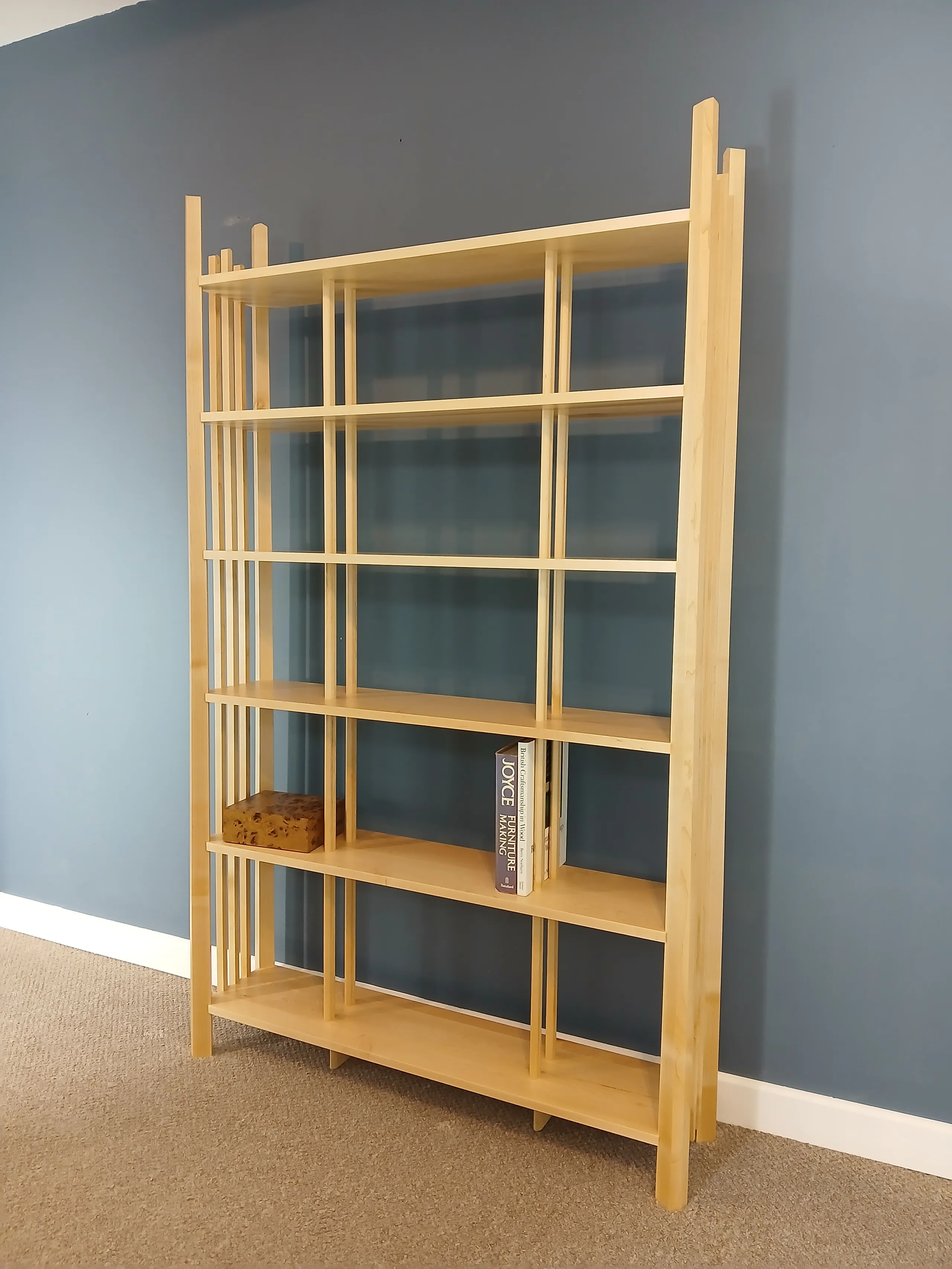 The slender vertical legs of my bookshelves give them a light airy feel yet provide real strength. They can be built to suit a requirement or to fit a space.